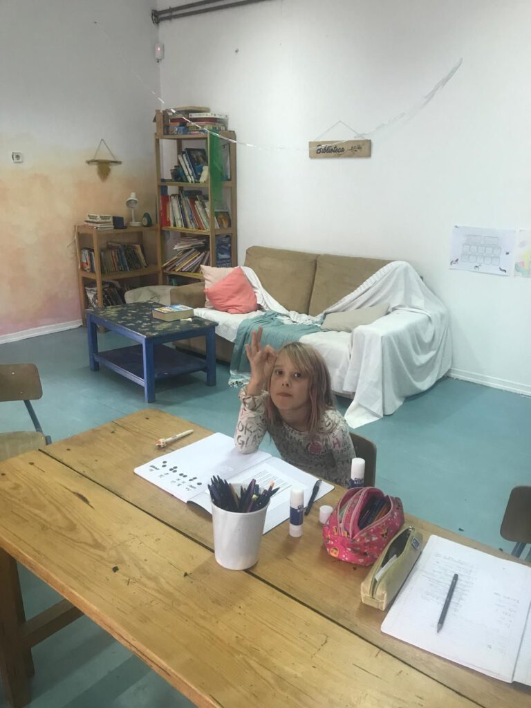 Sinds september zit het leerproject, we mogen het geen school noemen, in een nieuw gebouw. Nieuw voor het project dan, want het is een oude kleuterschool. De oude locatie had erg kleine ruimtes en nu hebben zo grote lokalen, dat is wel lekker. Wel is de buitenruimte een stuk saaier, maar dat gaan we nog onder handen nemen. Nu even wat foto’s van onze hard lerende kinderen.