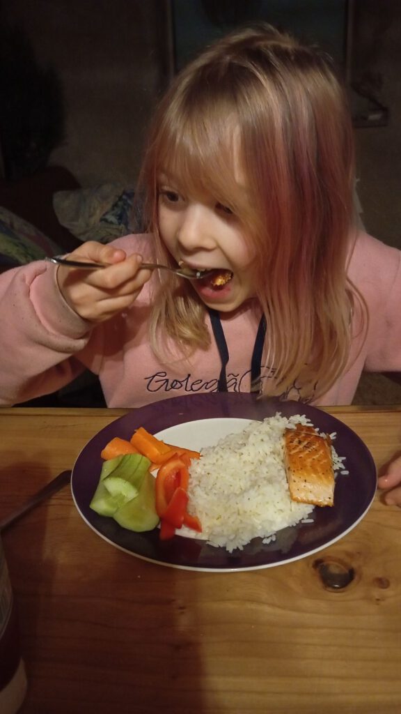2 januari komt er weer een beetje energie in ons en krijgen we ook weer trek. Eind van de dag bak ik lekker een stukje zalm, maar de trek is snel weg, want na twee happen is Fea er alweer klaar mee.