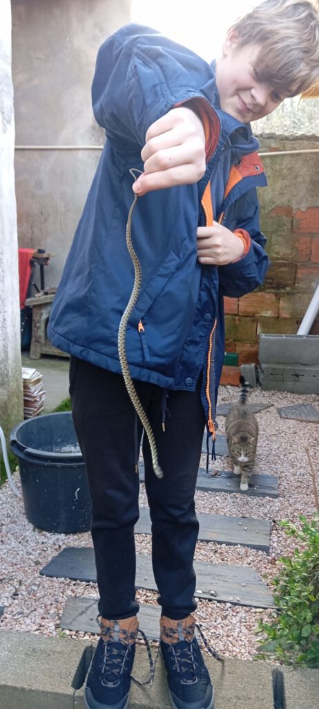 Nu eerst even een paar dagen bijkomen van al dat reizen van de jongens. Tot ik naar de wc ga en er een slang op het muurtje ligt. Ons wc is in een oud schuurtje en die is nog aan alle kanten open. Max komt me redden.