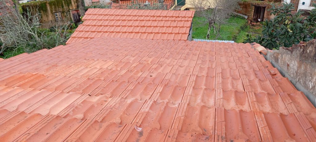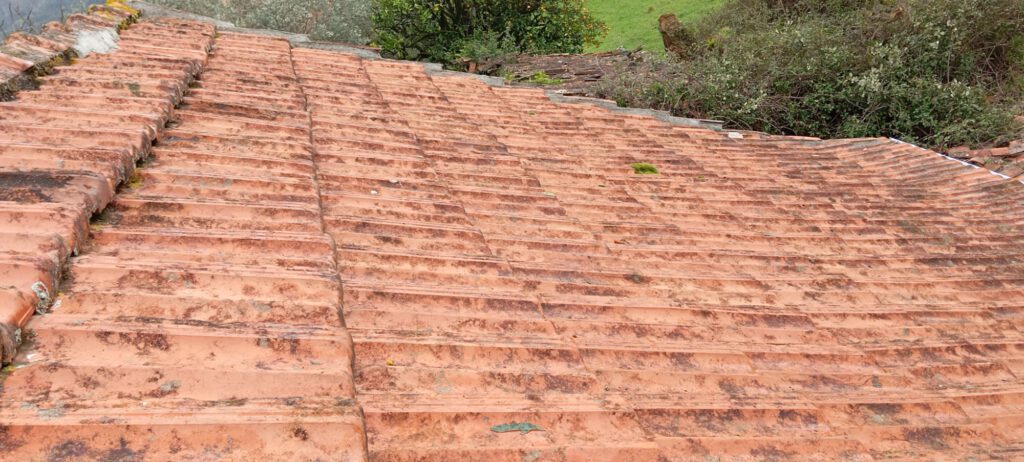 Het is ons gelukt. Alles ligt er weer redelijk netjes bij. Het dak van ons huis is heel oud en het kan niet helemaal meer recht liggen. De pannen breken als je erop gaat lopen. Ik heb nu op mijn buik liggend alles terug op zijn plek geduwd. Het dak bij onze voordeur is ook oud en veel pannen breken terwijl we de pannen aan de zijkant van het huis weer vast cementen. Dus die worden ook weer vervangen. De overgang van keukendak naar het dak bij de voordeur krijgen we niet helemaal goed, maar het is buiten en een paar druppels kan het wel hebben. Het dak van de grote schuur is onherstelbaar beschadigd. Het is gewoon te oud. Het hout is niet meer betrouwbaar. Ik ga nog even bij de caravan kijken, maar ook daar kan ik niets. Er ligt een goed matras in en die zou ik er graag uithalen, maar de deur gaat niet meer open en onze energie is op. Het begint ook te regenen, dus we zijn klaar voor vandaag. Het begint te schemeren dus het is ook wel genoeg. From dusk till dawn zullen we maar zeggen. We gaan de kachel aansteken. Er schijnt nog meer storm aan te komen. We gaan het zien hoe dat gaat lopen en of we de daken echt droog hebben. Wij moeten even heel erg bijkomen.